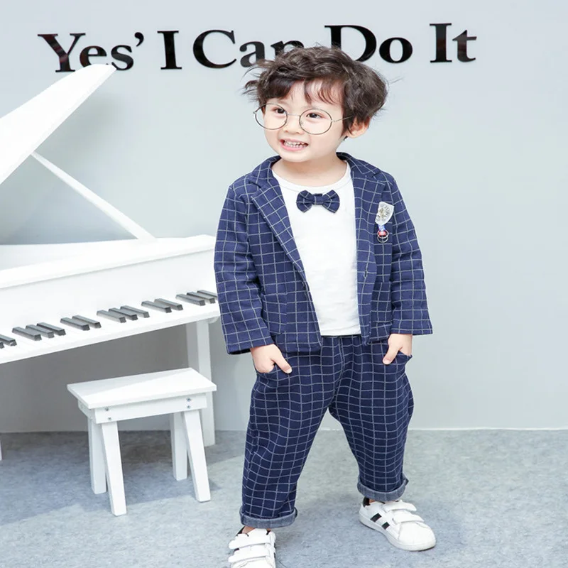 Весенне-осенняя одежда для маленьких мальчиков; Комплекты детской одежды; Хлопковая куртка джентльмена для малышей; Футболка и штаны; 3 шт./компл.; Детские спортивные костюмы для От 0 до 4 лет