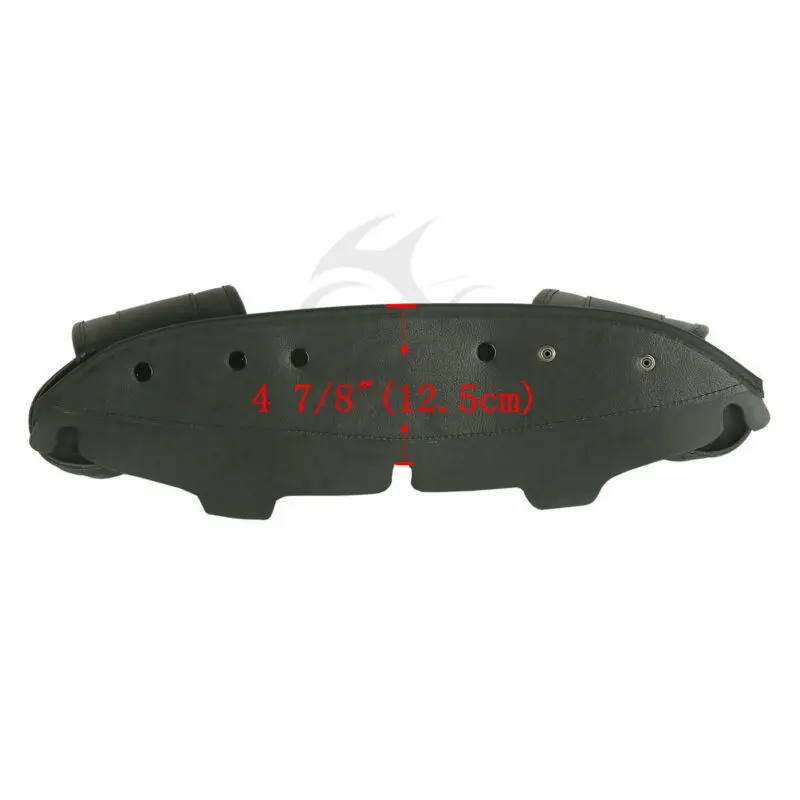 Aftermarket 100% Brand New Distinctively styled windshield bag features large opening flaps for easy access to contents - keep your sunglasses or camera at your fingertips Leather-grained UV- and weather-resistant SaddleHyde bag has over 450 cu. in. of total cargo capacity in three independent pockets Superbly constructed bag fits snugly with the contours of the inner dash of the classic bat-wing fairing. Rigid construction holds bag shape even when empty; quarter-turn flap releases accept mini-padlocks so you secure your belongings in the bag Material:High Quality PU Leather Color: Black