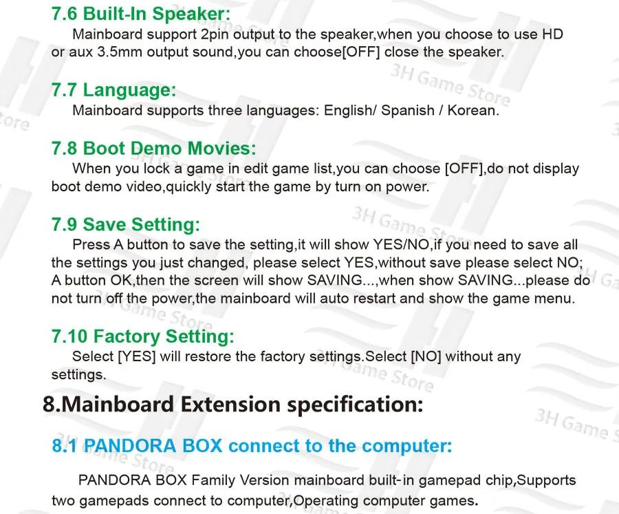 1.Двойной боевой аркады(Встроенный в Pandora Box CX 2800 игрПлата не требует загрузки файла)2.HD кабель3.USB кабель4. Адаптер питания5. Кабель питания (вилка EU/GB/AU/US/UK)Смотрите так же другие товары: