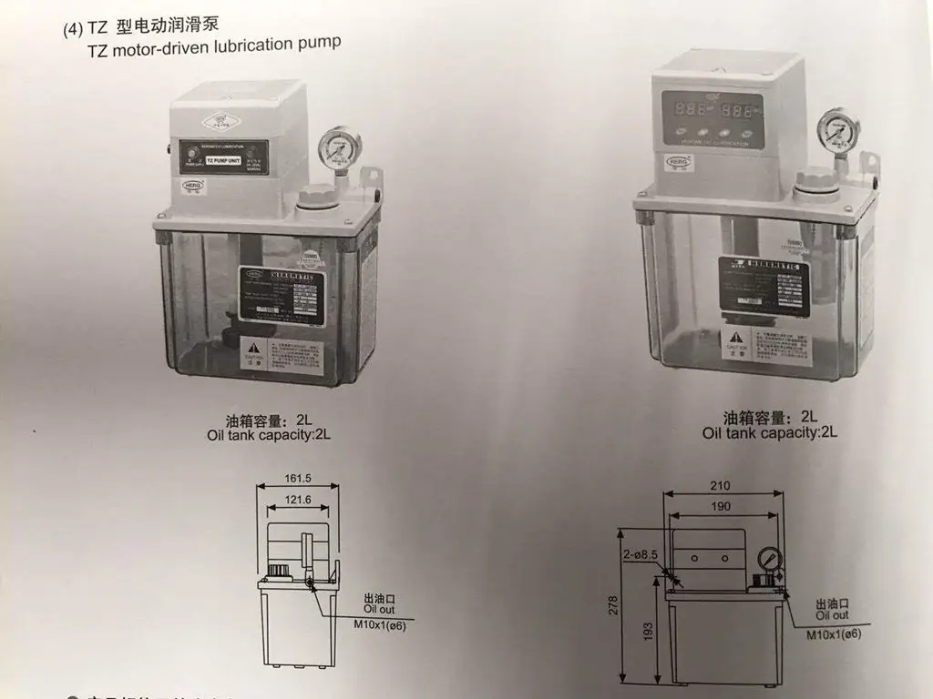 TZ Тип моторного Смазочного насоса-это зубчатый насос со специальной Шестерня из легированной стали, с простой установкой и проводкой, хорошей самопоглощающей производительностью и высоким объемным расходом. серия TZ-Type с приводом от двигателя смазочный насос поставляется в двух вариантах с двумя размерами резервуара (2L и 4L) высокопрочный пластиковый резервуар, и он также доступен для различных размеров резервуаров. Насос доступен без модуля с двойным таймером, с модулем с двойным таймером и с NK-3 двойным таймером с цифровым дисплеем и нажмите кнопки в качестве опции. Может быть сделан насос с механизмом снятия давления в соответствии с требованиями заказчика. Насос оснащен переключателем уровня. В соответствии с различными приложениями, он может быть оснащен переключателем давления. Выбор Смазочного насоса с переключателем уровня и переключателем давления способен обнаруживать давление и уровень масла в системе, а также реализовывать автоматическую интеграцию функций прерывания, работы и сигнализации. Насос с механизмом снятия давления, он может быть с положительным распределителем объема смещения, чтобы объединить с объемной системой смазки с положительным смещением, через объемный распределитель для доставки дозирующего масла в каждую точку смазки .. Насос без механизма снятия давления может быть с сопротивлением распределителю типа, чтобы объединить сопротивляющийся Тип системы смазки, разряжается масло пропорционально каждой точке смазки. TZ Тип моторного насоса смазки широко используется в станках, пластиковых машинах, прядильных и ткацких машинах, легкой промышленности, печатных машинах, эскалаторе, конвейере и так далее.