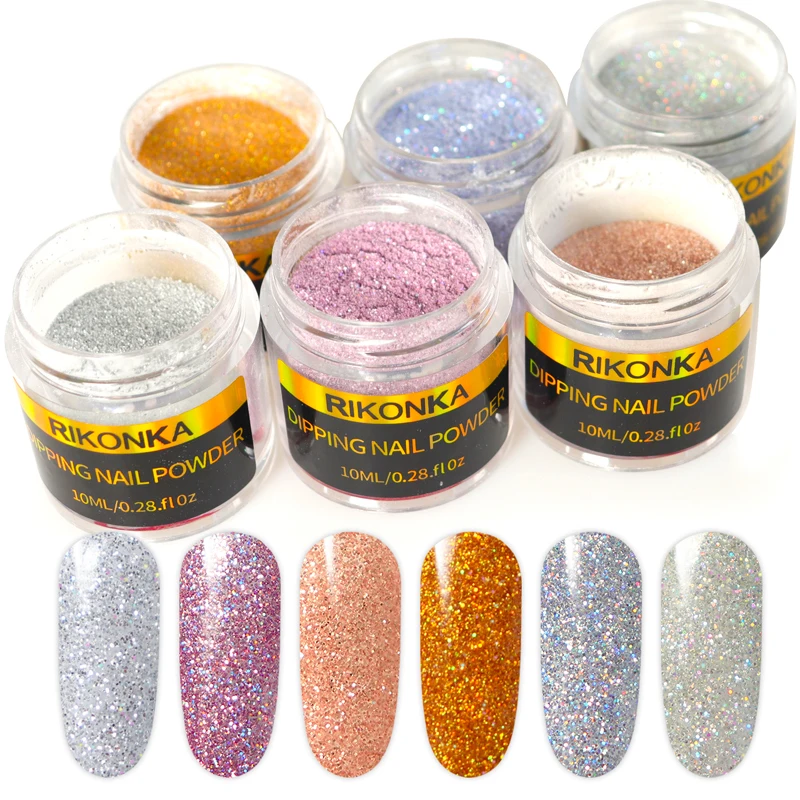 Голографическая пудра для ногтей RIKONKA, градиентная пудра с голографическим блеском, набор порошковых пудр без лампы, украшения для дизайна ногтей