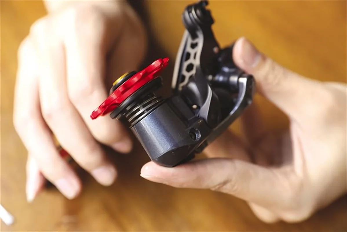 Kactus TECH concentric swing cage system adopts single aluminum alloy bolt fasten solution. It is lighter and easier for end-users. Titanium alloy shaft fastened to the aluminum alloy base, evenly distributing the force to the entire carbon fiber plate. shifting speed increased by 20%-26%.