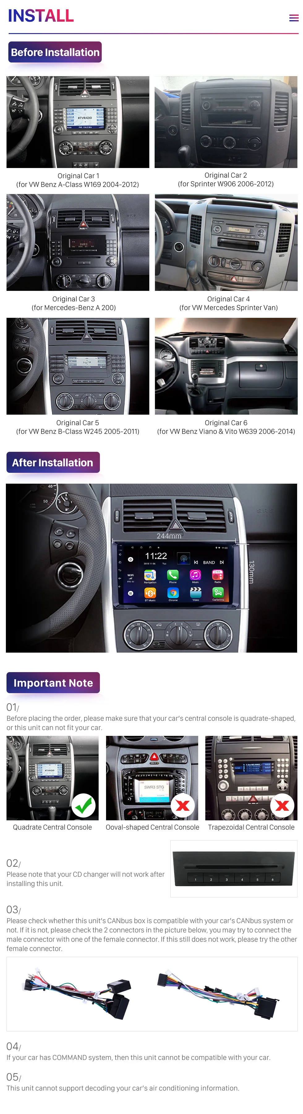 | 2004-2012 Mercedes Benz A Class W169 A150 A160 A170 Конфигурация