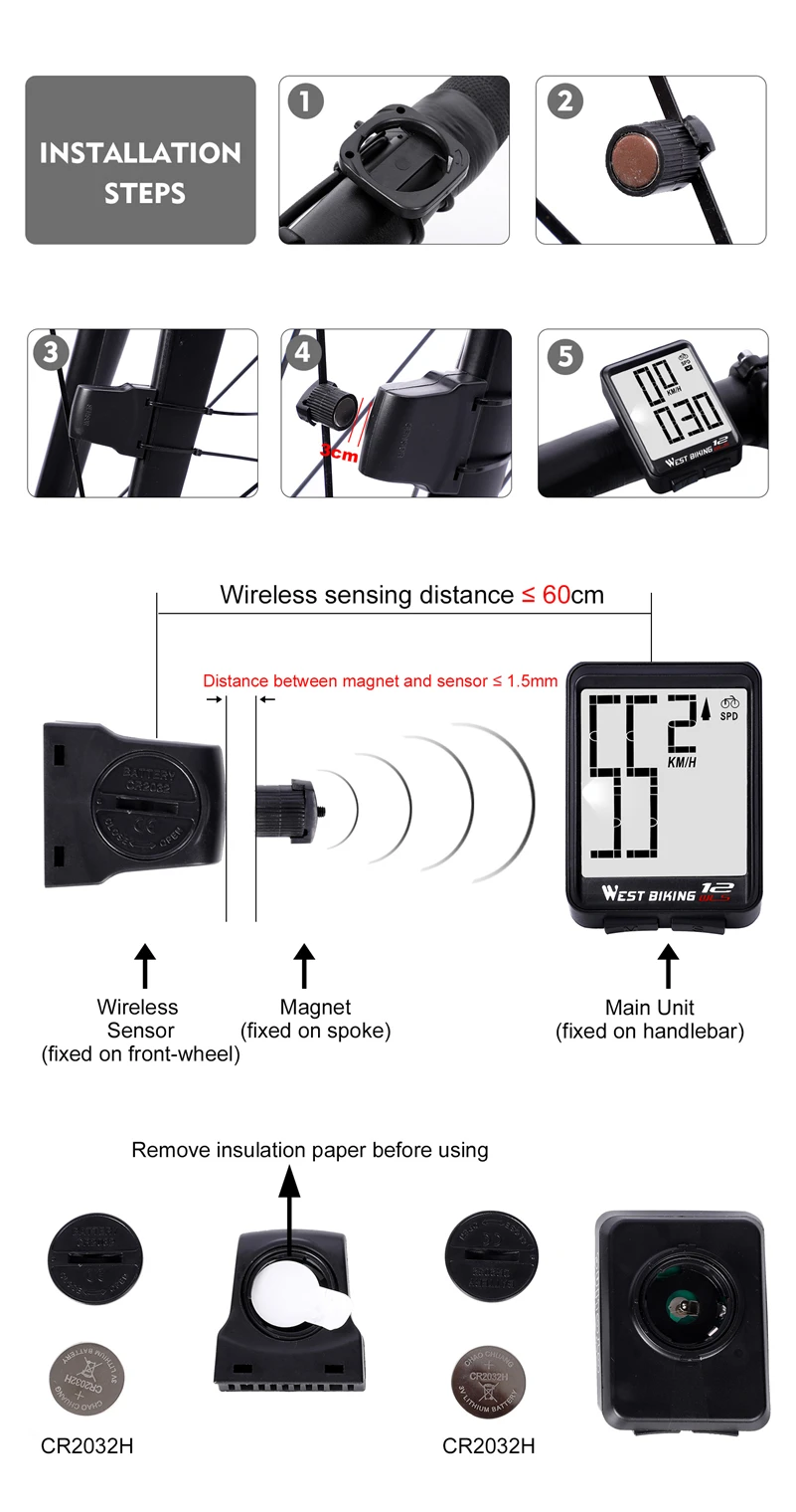Distance Between Magnet And Sensor < 3MM Distance < 60CM(Wireless Sensor Fixed On Front Fork)