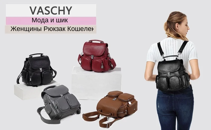 Носите свои основные предметы по всему миру в этом удобном и стильном милом рюкзаке из искусственной кожи от VASCHY. Небольшой Рюкзак Кошелек изготовлен из искусственной Веганской кожи и имеет серебристую фурнитуру и несколько карманов, чтобы держать вас в форме, когда вы находитесь на ходу. Этот женский рюкзак имеет откидной верх с застежкой и полностью на подкладке основное отделение с молнией в верхней части и много места для вашего кошелька, косметический Чехол, солнцезащитные очки, бутылка для воды, и небольшие портативные электронные устройства. Интерьер включает в себя два кармана на молнии для ценных вещей и накладные карманы для хранения вашего мобильного телефона, iPod плеера или других мелких предметов, а внешний-два кармана на молнии для дополнительного хранения.