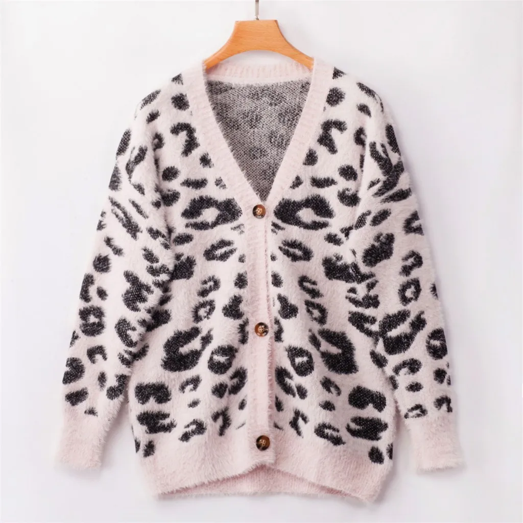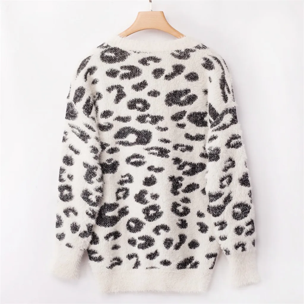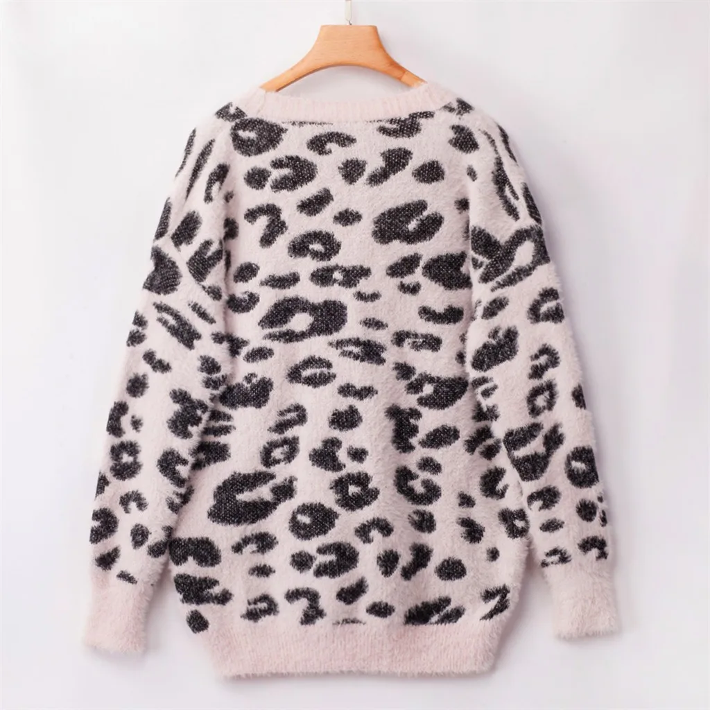 Женский трикотажный Леопардовый пуловер с длинным рукавом и v-образным вырезом большого размера
