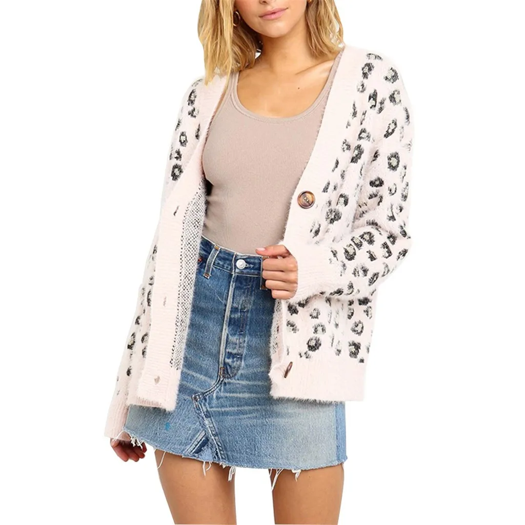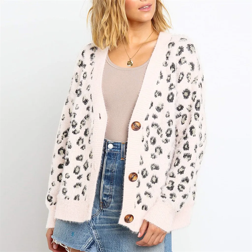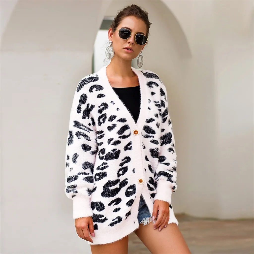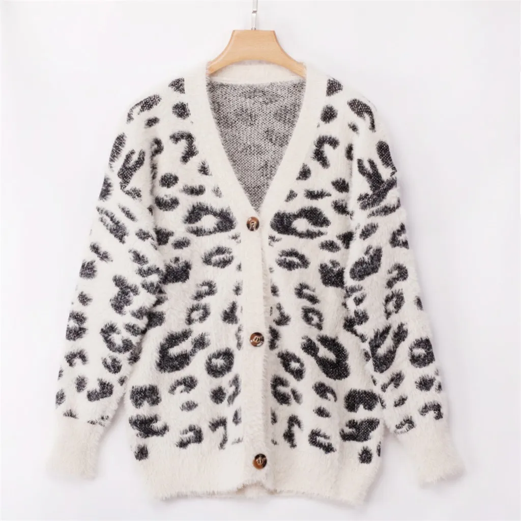 Женский трикотажный Леопардовый пуловер с длинным рукавом и v-образным вырезом большого размера