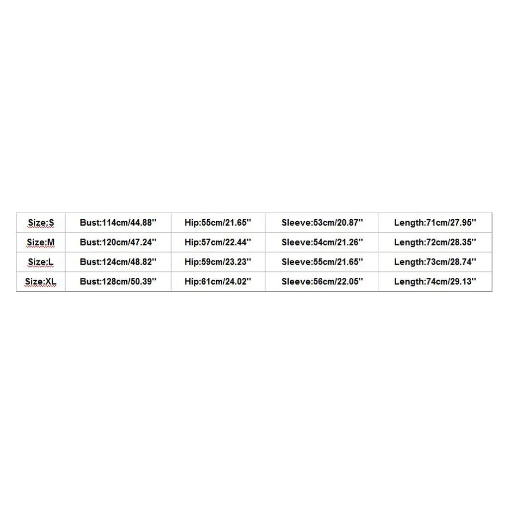 | Размер: XL | Бюст: 128 см/50,39 дюйма | Обхват бедер: 61 см/24,02 дюйма | Рукав: 56 см/22,05 дюйма | Длина: 74 см/29,13 дюйма |