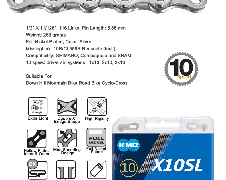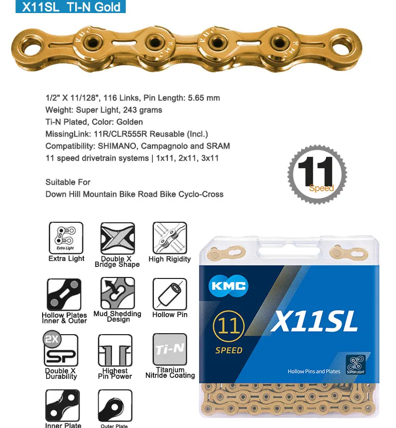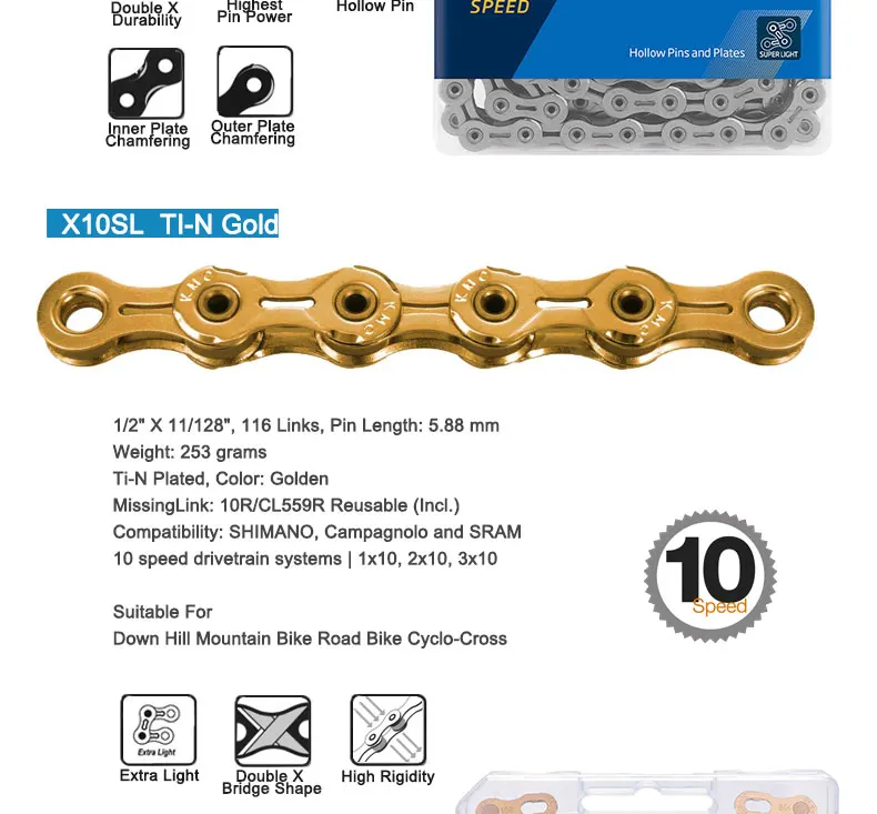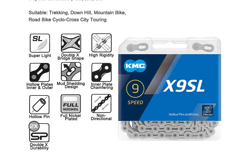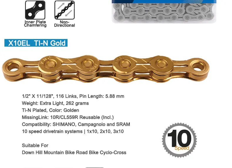 Цепь серии X/EL/SL Легковесный класс и отвечает высоким требованиям. Цепь имеет много важных преимуществ, таких как супер-быстрое изменение, плавное действие и даже значительное снижение «цепного сосания».