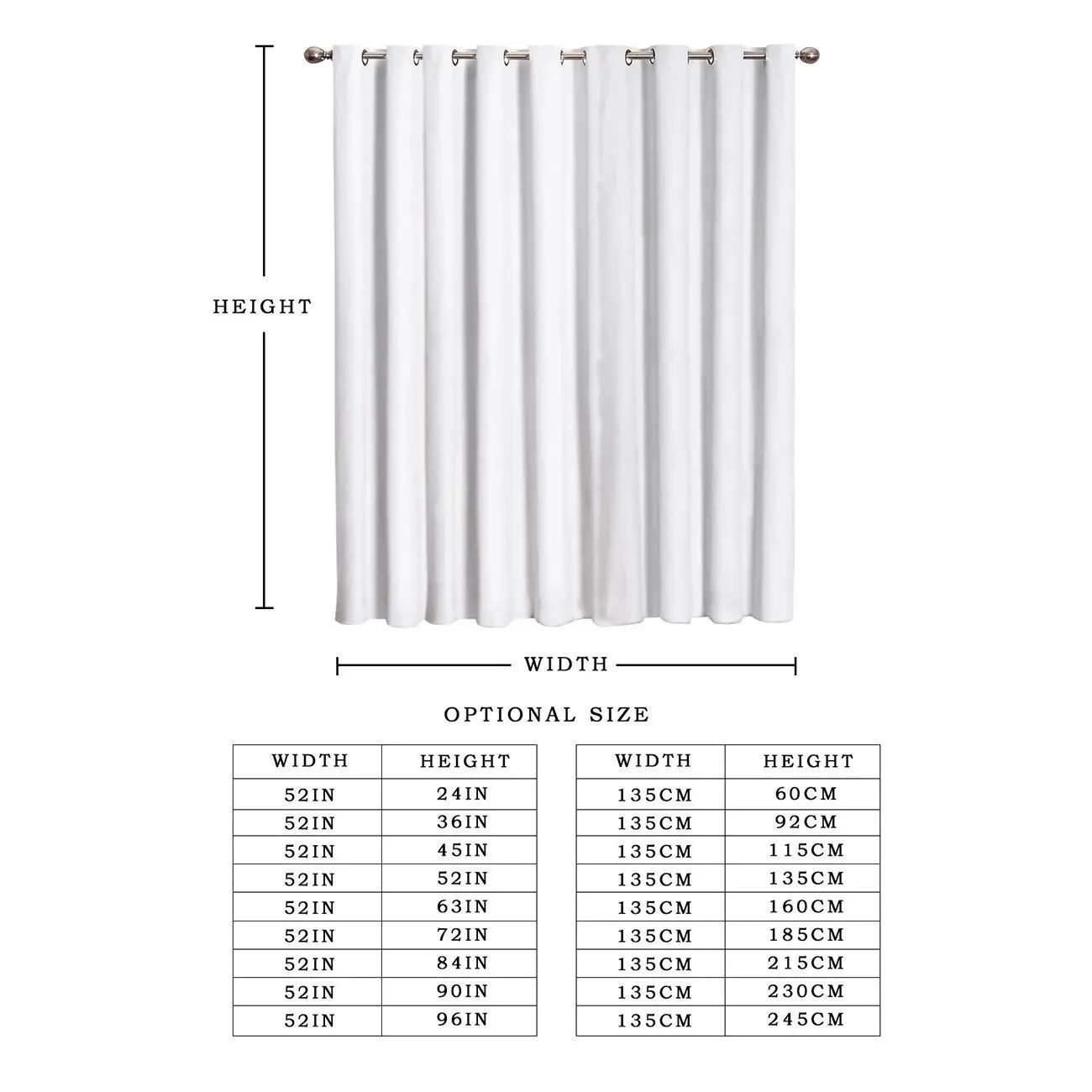 Например: W125 × H170 × 2-это двухсекционная штора, Общая Ширина-250 см, W125 × H170-цельная штора, ширина-125 см