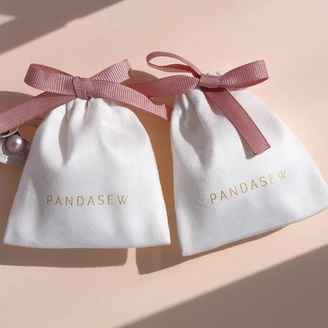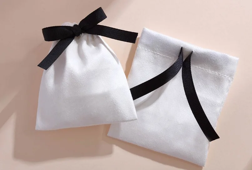 Белая фланелевая сумка на шнурке