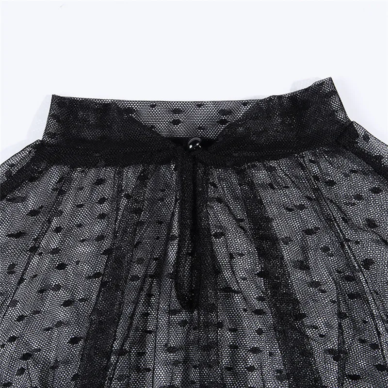 Women Mesh Sheer See Through T Shirt Blouses OL Tops Ladies Long Sleeve Casual Loose Blouse Shirts Dot Outwear Shirt Cover Ups