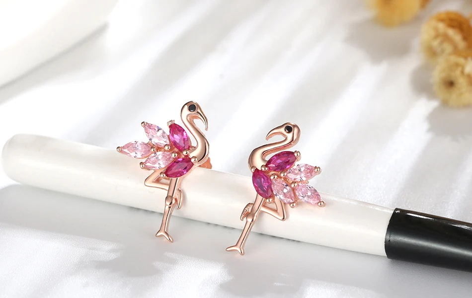 ORSA JEWELS, Настоящее серебро 925 пробы, серьги-гвоздики в форме фламинго, сочетаются с розовым и розовым цирконием АААА, серьги, ювелирное изделие, SE164