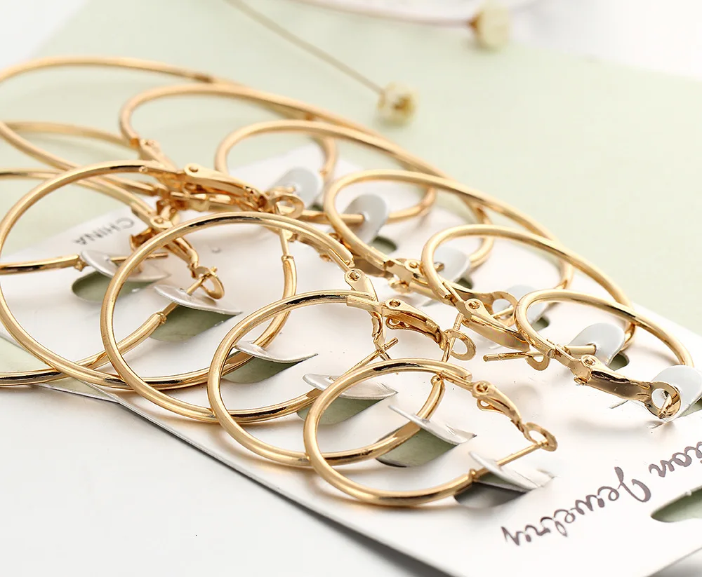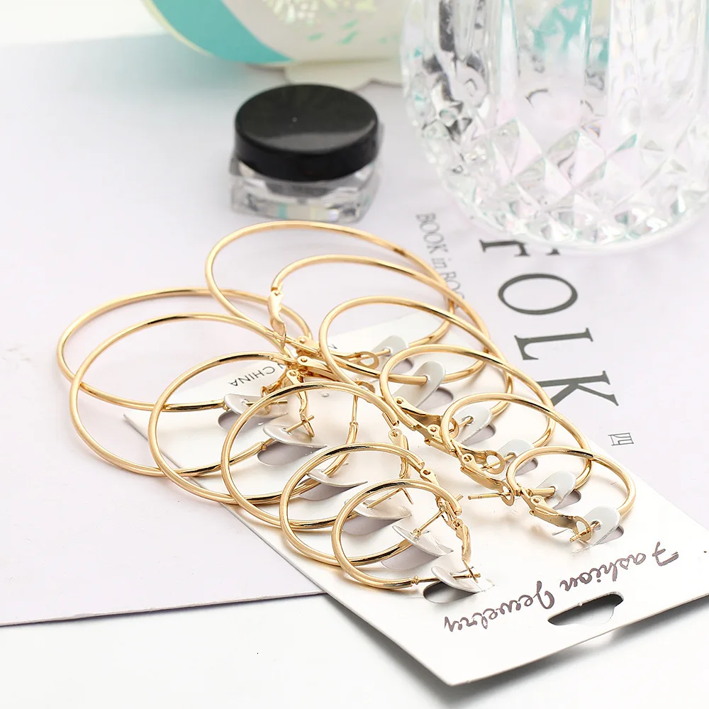 Mostyle, 6 пар/компл., большие круглые висячие серьги, набор для женщин, 2019, золотой цвет, Висячие круглые большие серьги, женские простые серьги в стиле панк
