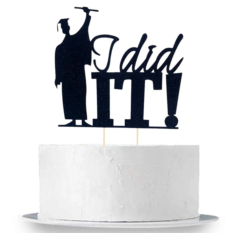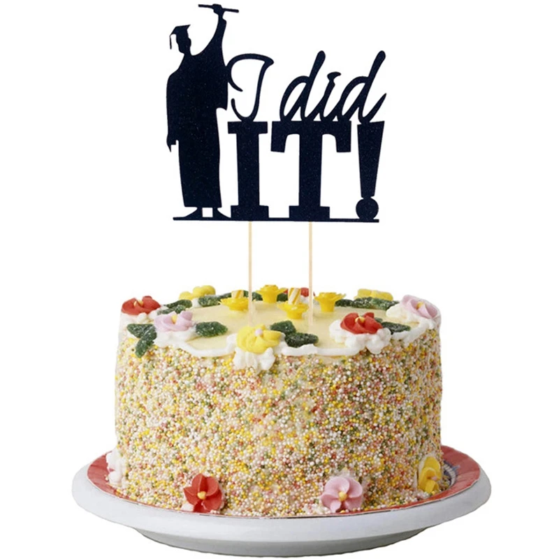 Looking for an adorable and easy way to decorate you party cake? Look no more! This I Did It graduation I cake topper will worked out perfectly on your Grad's cake! With its black color, it will surely make a cake extra special & suit to any cake color and design.
