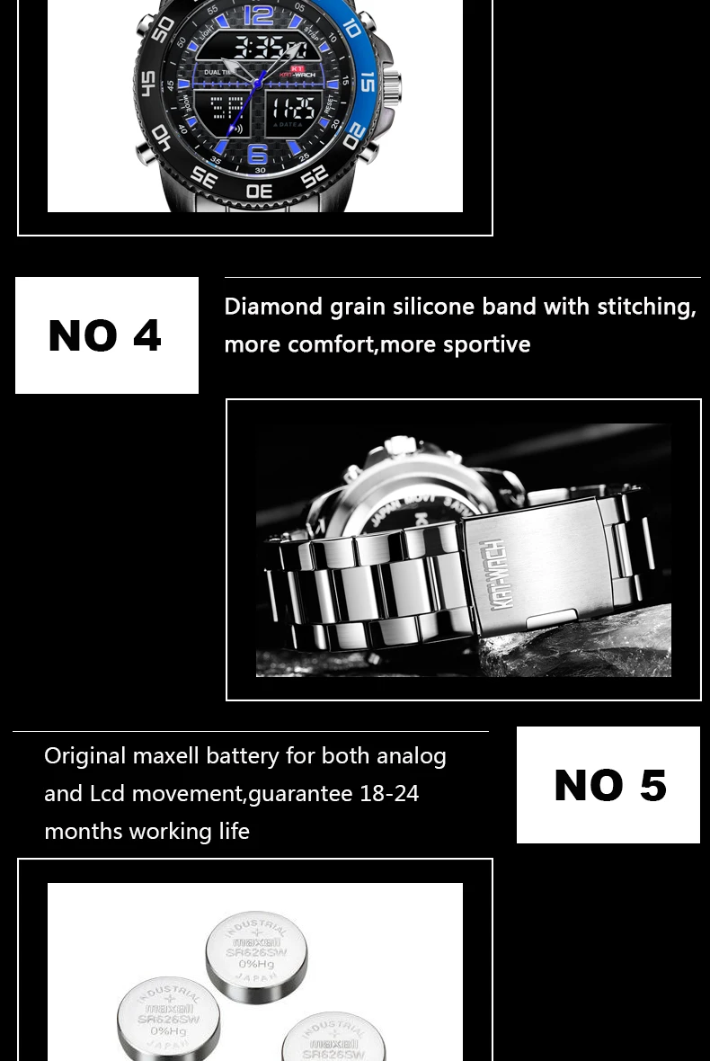 Бренд: KAT-WACH Модель: KT728 Дисплей: Цифровой Диаметр циферблата: 51 мм Материал ремешка: силикон Колебательная система: электронное движение Толщина: 13 мм Длина ремешка: 15-21 см Ширина ремешка: 2 см