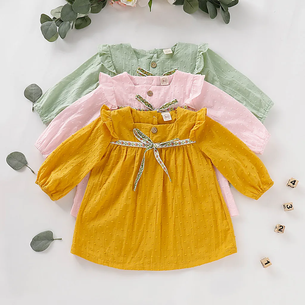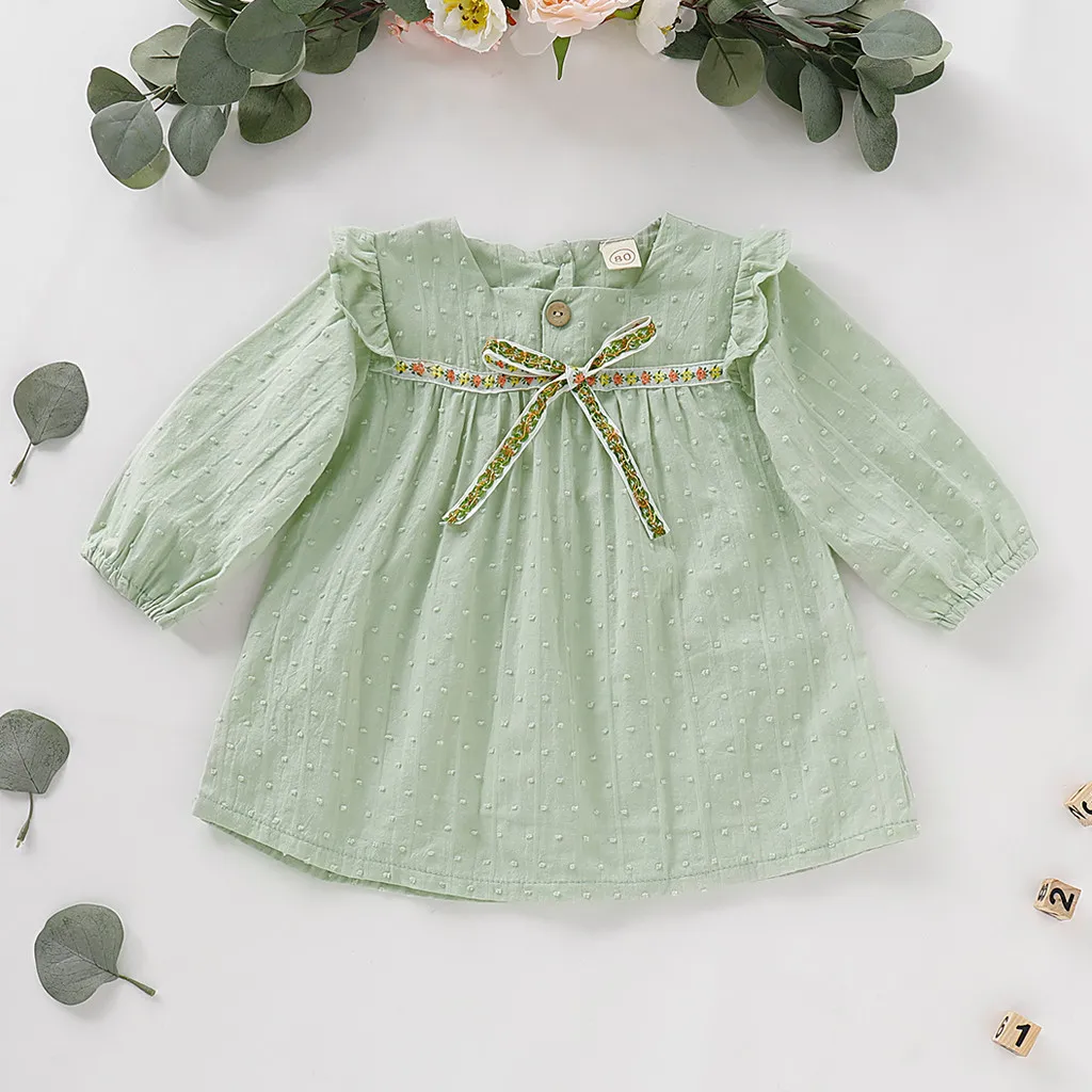 Однотонные топы с длинными рукавами и бантом для маленьких девочек; платье принцессы; одежда