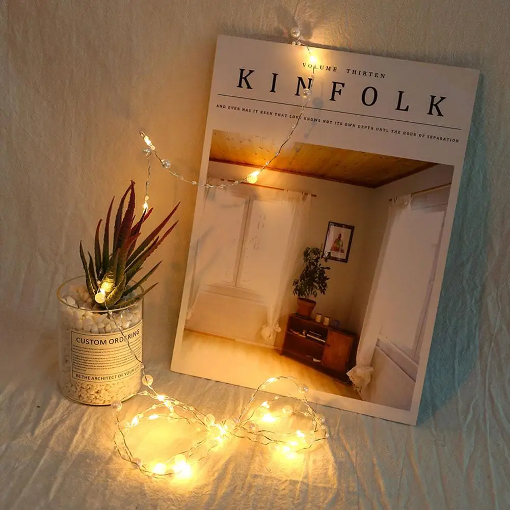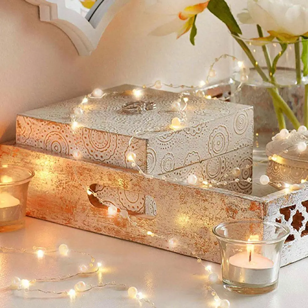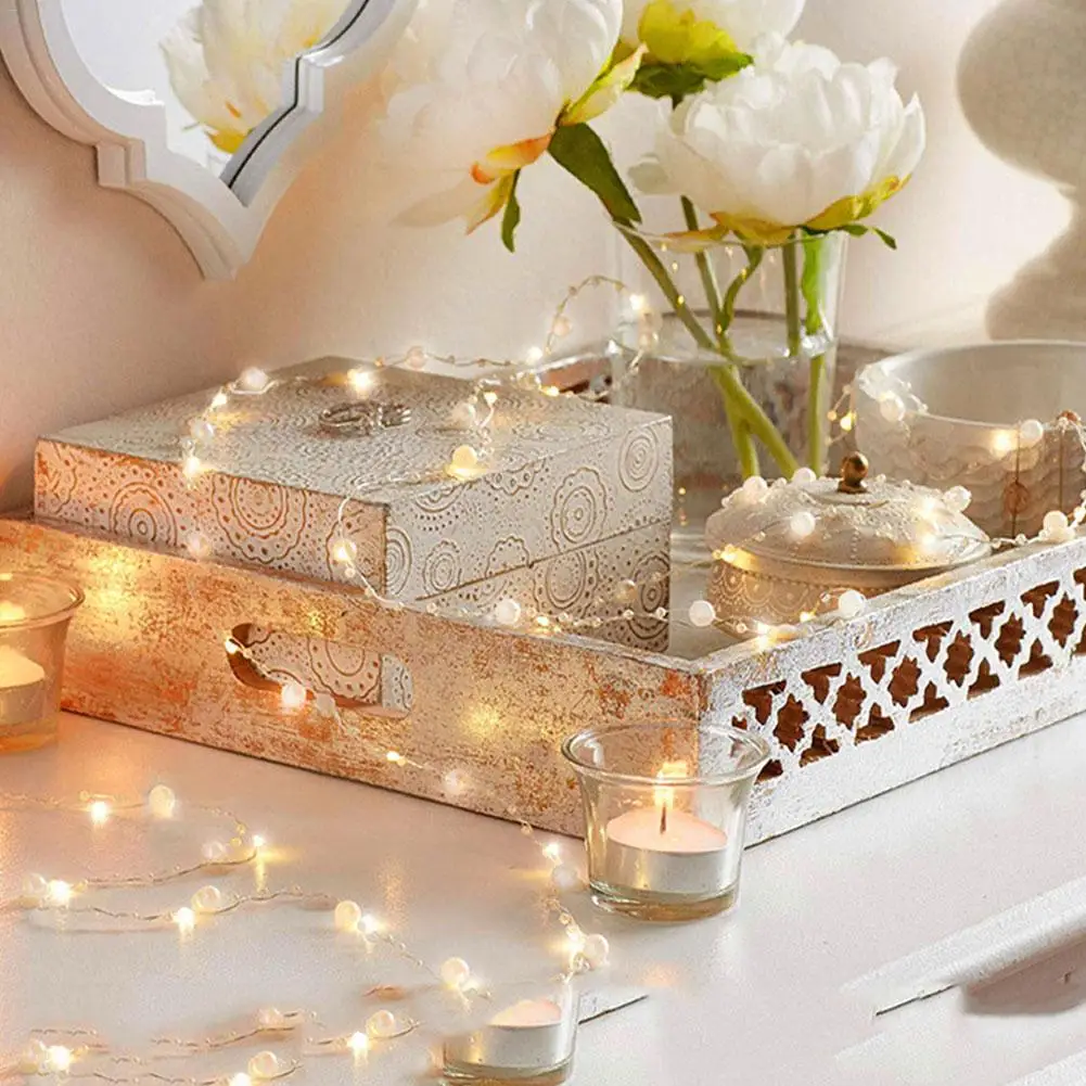 Батарея/USB управляемый жемчуг 20 светодиодный медный провод струнные огни перламутровые сказочные огни для свадьбы дома вечерние рождественские украшения