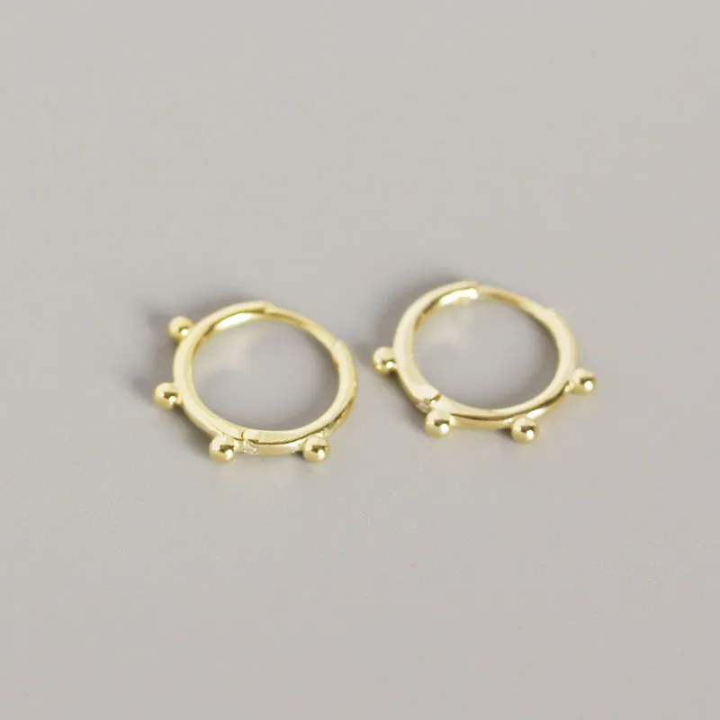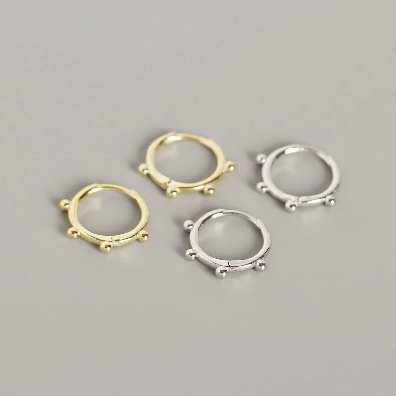 100% Стерлинговое Серебро 925 пробы, серьги-кольца для девушек, корейские геометрические круглые бусины, серьга с пряжкой, ювелирные изделия