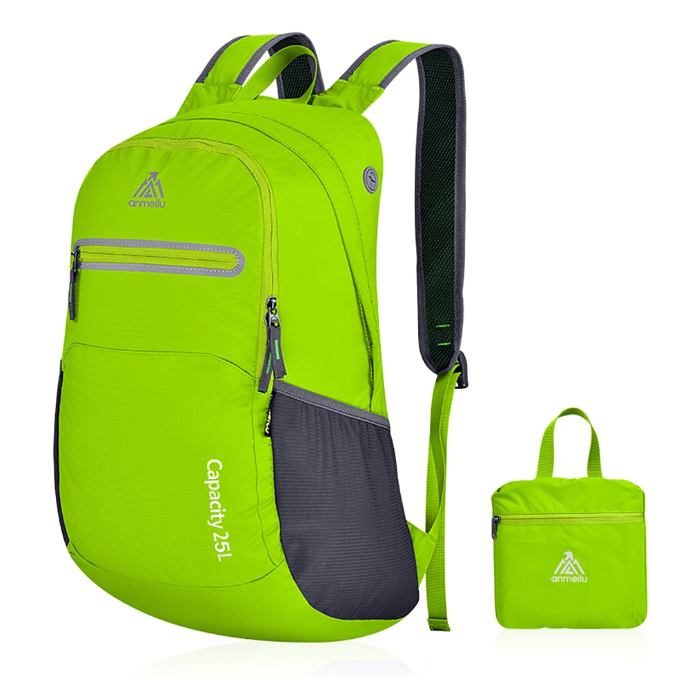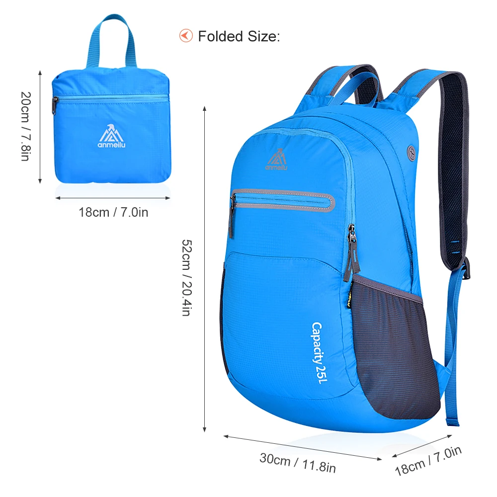 Вместительная для уличных вещей, превосходная нейлоновая ткань водоотталкивающая и устойчивая к износу, и просто сложите ее в встроенный пакет для удобного хранения и транспортировки. Этот легкий рюкзак станет отличным компаньоном для кемпинга на открытом воздухе, пикника, пеших прогулок и езды на велосипеде.