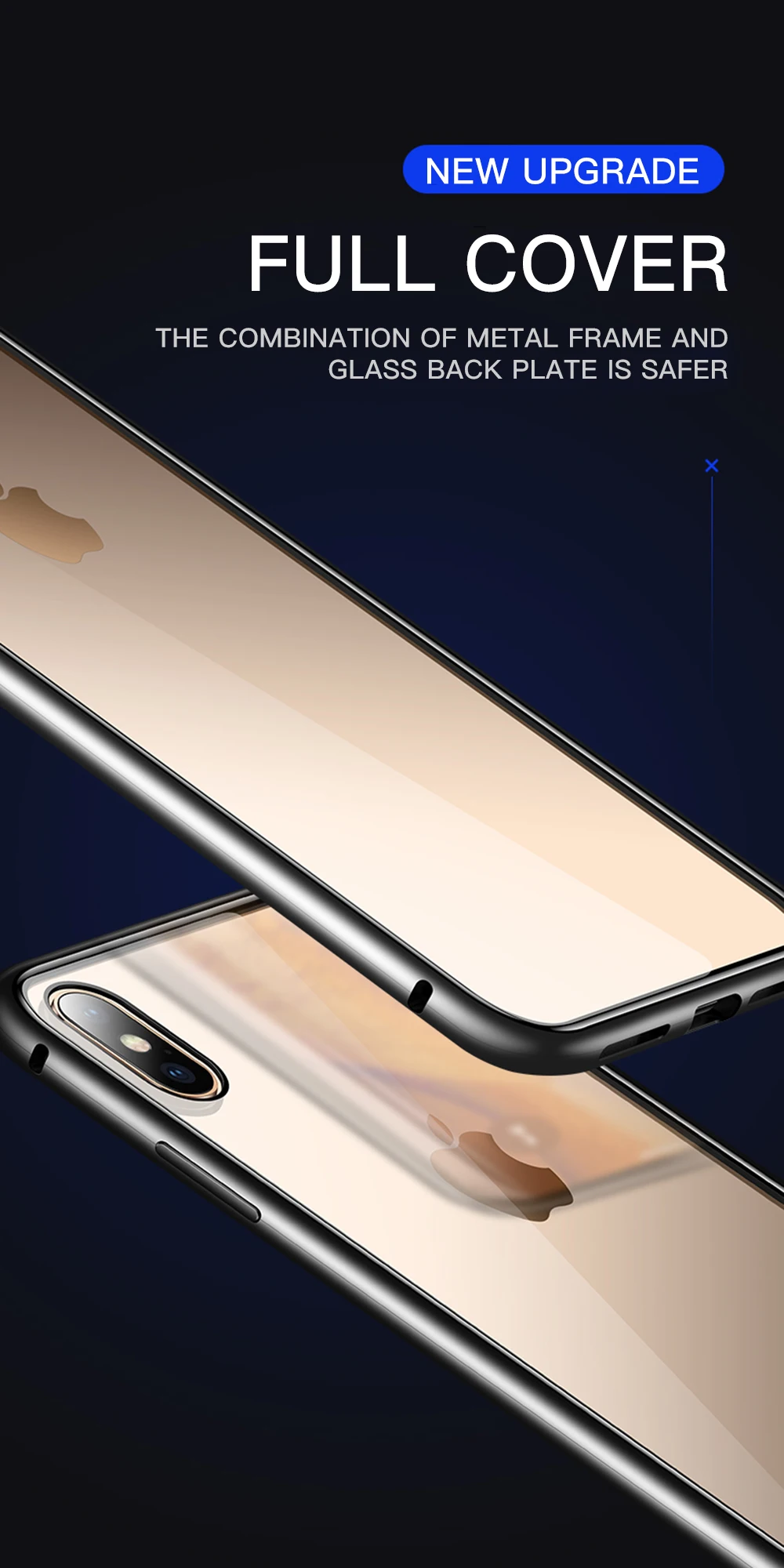 Full Cover The combination of metal frame and glass back plate is safer