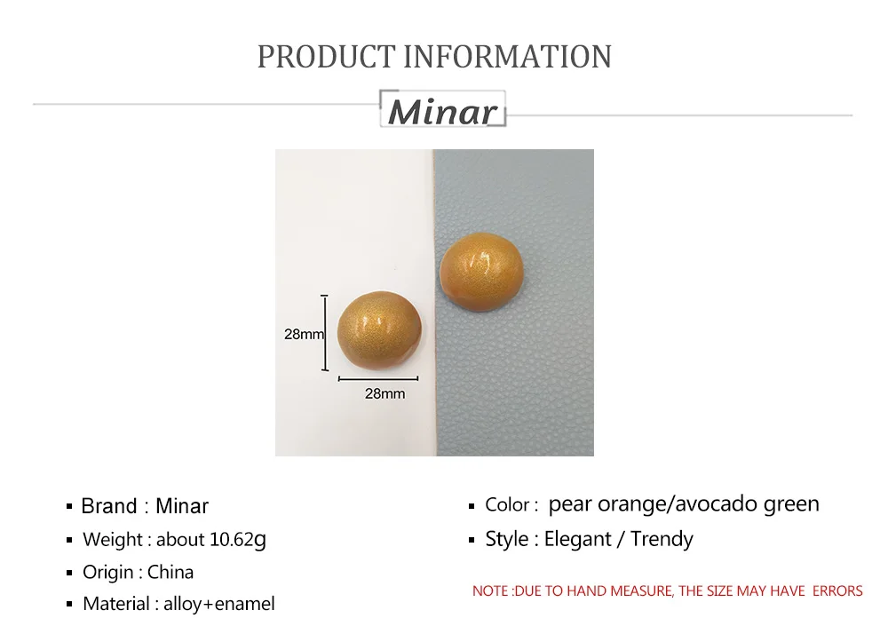 Name: Painless Hemisphere Ear Clip Size: 28*28mm Material: alloy+enamel Color: Pear orange/Avocado green Feature : 1.Unique Orange Peel Surface Veins 2.Soft Light Fruit Color 3.Hollow Design- Lightweight and wear more comfortable 4.Soft Silicone pad- painless 5. Ear Clip- No Piercing and suit for more people Function: Jewelry&Accessories Application: Women/Girls Package Includes: 1Pair/Opp Bag Sales Mode:Retail,Drop Ship,Wholesale Please Note: • Due to hand measure, the size may have 0-1cm error; • Due to Different Monitor, the color may have difference; • Due to long shipping, the item may be lost or damaged in transit, if it happened, pls contact us firstly immediately before leave feedback or open a dispute, thanks for your understanding.