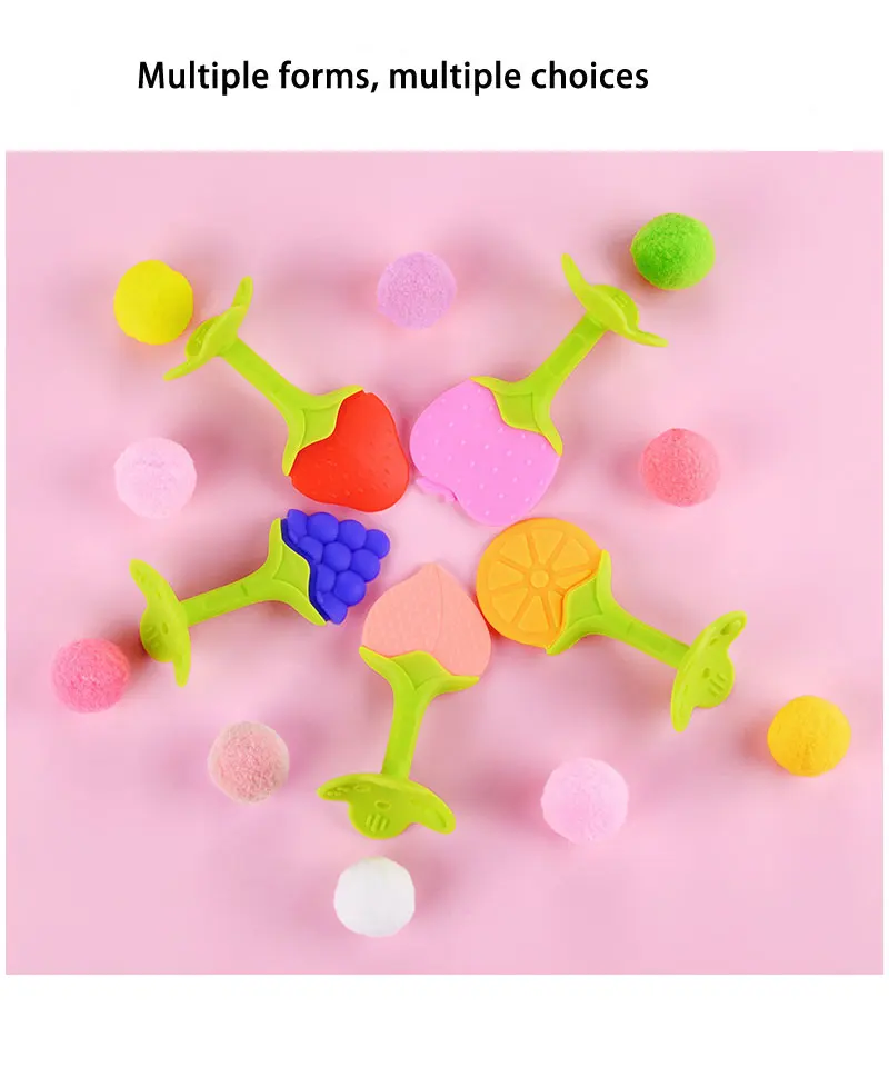 Название продукта: фруктовый стерео Прорезыватель Стиль: яблоко, апельсин, клубника, виноград, персик Материал: пищевой силикон Первый этап: начинающийся период, когда зубы официально не растут, ребенок будет чувствовать себя некомфортно в деснах. Этап 1 желатина может быть помещен в холодильник, и холодное прикосновение может облегчить отек и боль ребенка перед зубами. Второй этап: когда 6 месяцев, большинство детей 6 месяцев, и пара резцов средней зубчатой формы начинают расти. В это время Используйте замороженный Гутта-перча, массируйте нежные зубы, чтобы успокоить зубы, успокоить дискомфорт; Клей для твердых зубов массирует кожу, неровная поверхность зубного геля также стимулирует развитие мозга ребенка. Третий этап: когда ребенок вырастет вверх и вниз, четыре зуба, когда ребенок растет 4 резца и 4 клыка (собачьи зубы), рекомендуется использовать форму сосков, похожую на форму соски, легкий вес и легко захватывать. Клей, мягкий и твердый слой не только массирует новые зубы вокруг зубов, но и заставляет ребенка чувствовать хруст. Четвертый этап: 1-2 года 1-2 года-период длинных молочных моляров. Твердый зуб Гутта-перча может быть использован для достижения большого диапазона зуба. Дефлектор предотвращает попадание горла в контакт, а мягкий и твердый смешанный текстурный слой может уменьшить большие зубы. Боль в зубах помогает улучшить развитие зубов и способность к жеванию.