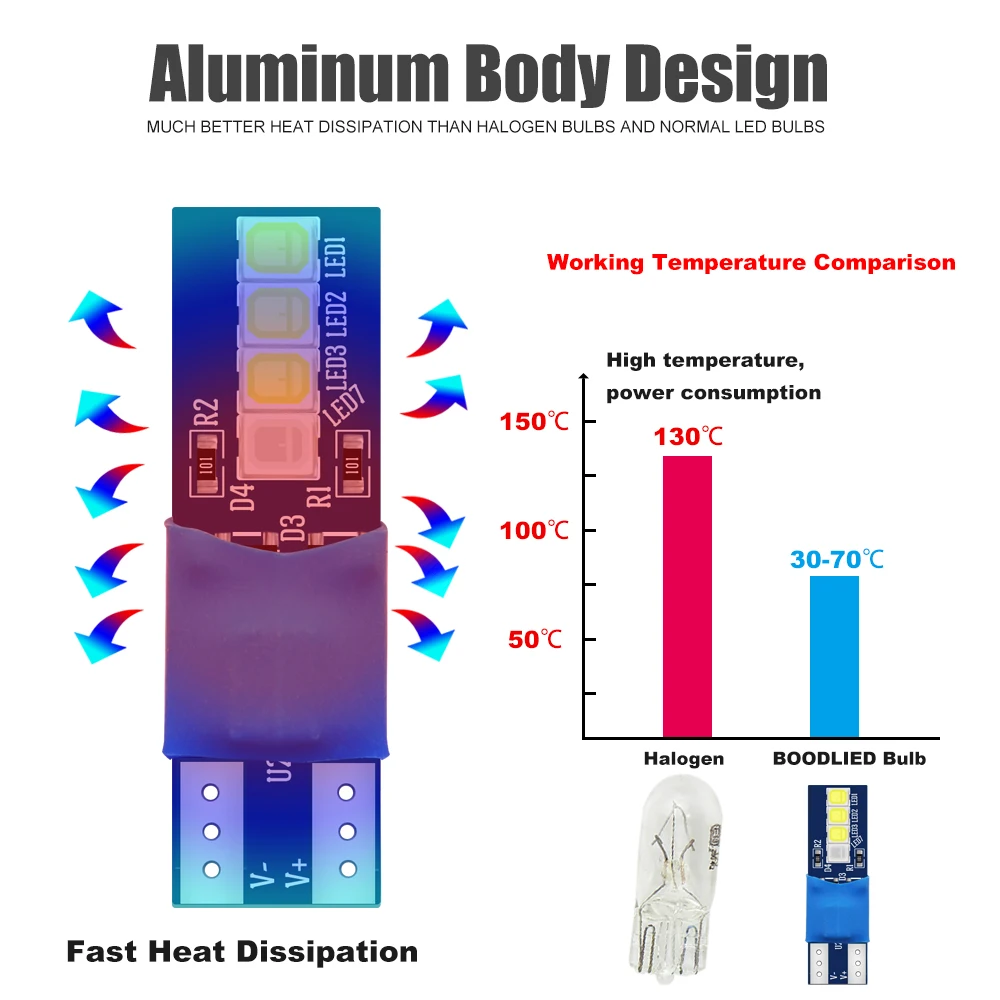 3. Aluminum Body Design, much better heat dissipation than halogen bulbs and normal LED bulbs.