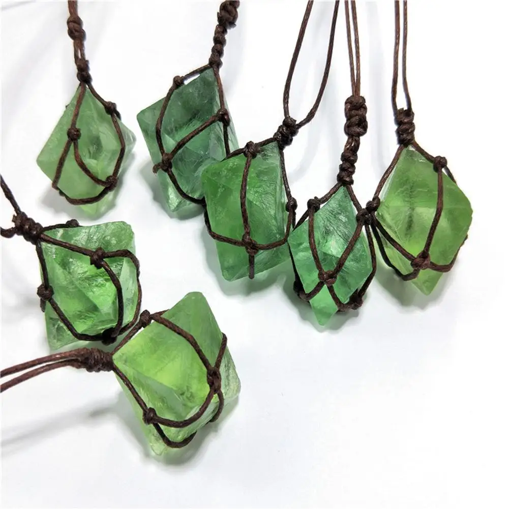 Кварцевый кристалл камень сине-зеленый флюорит обработки камня флюорит орнамент флюоритовая Подвеска со случайным плетением из плетеной веревки