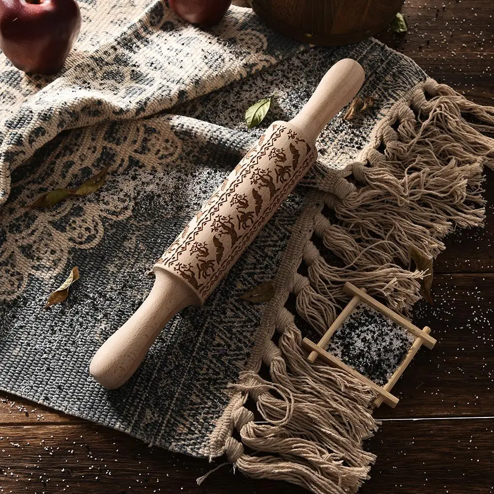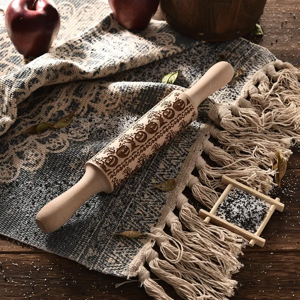 3. Скалка с рождественским рисунком тыквы, узор летучей мыши-паука очень подходит для изготовления макаронных изделий,