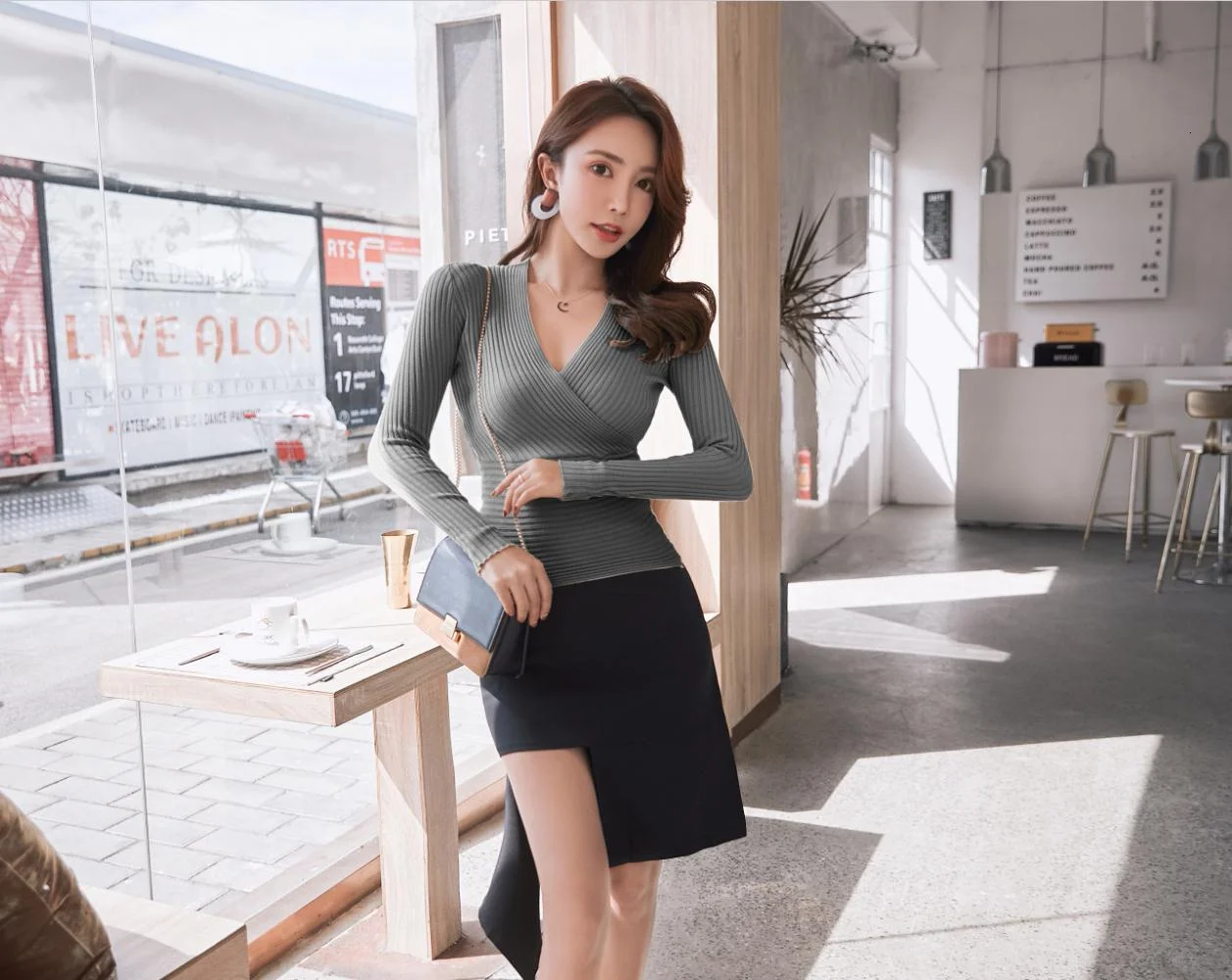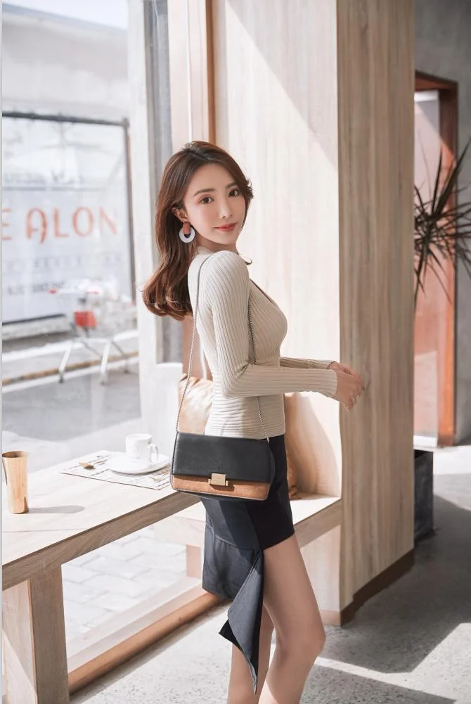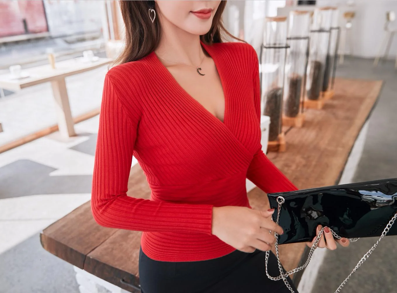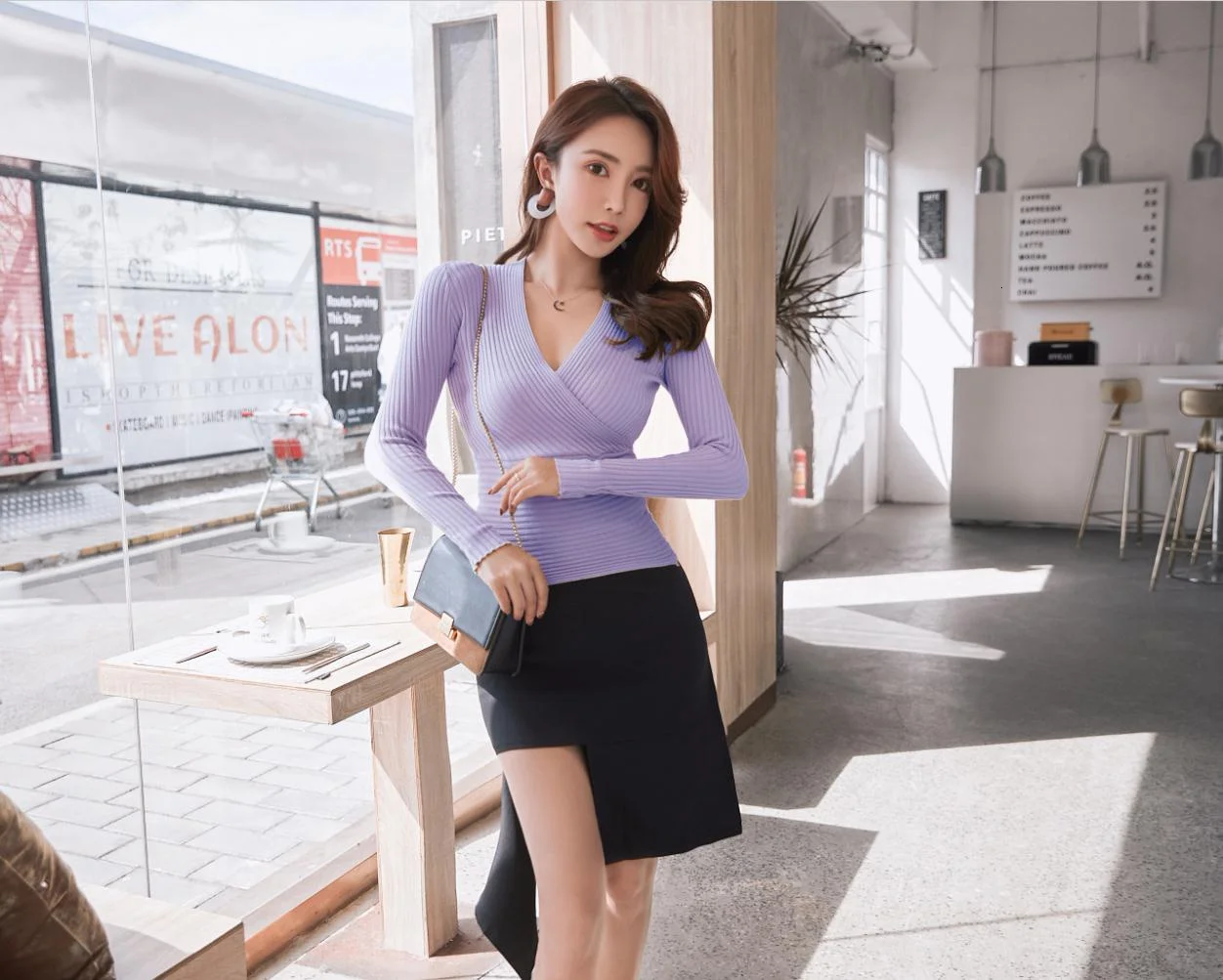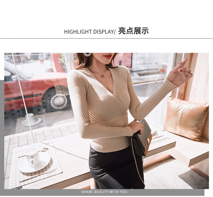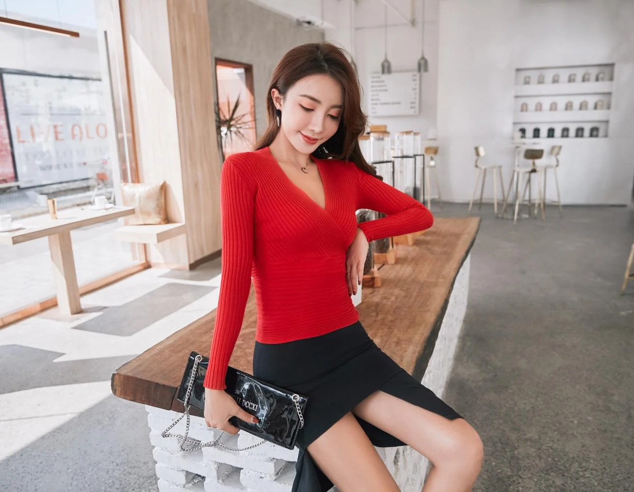 Женский трикотажный пуловер с длинным рукавом круглым вырезом | Женская одежда