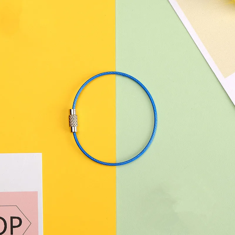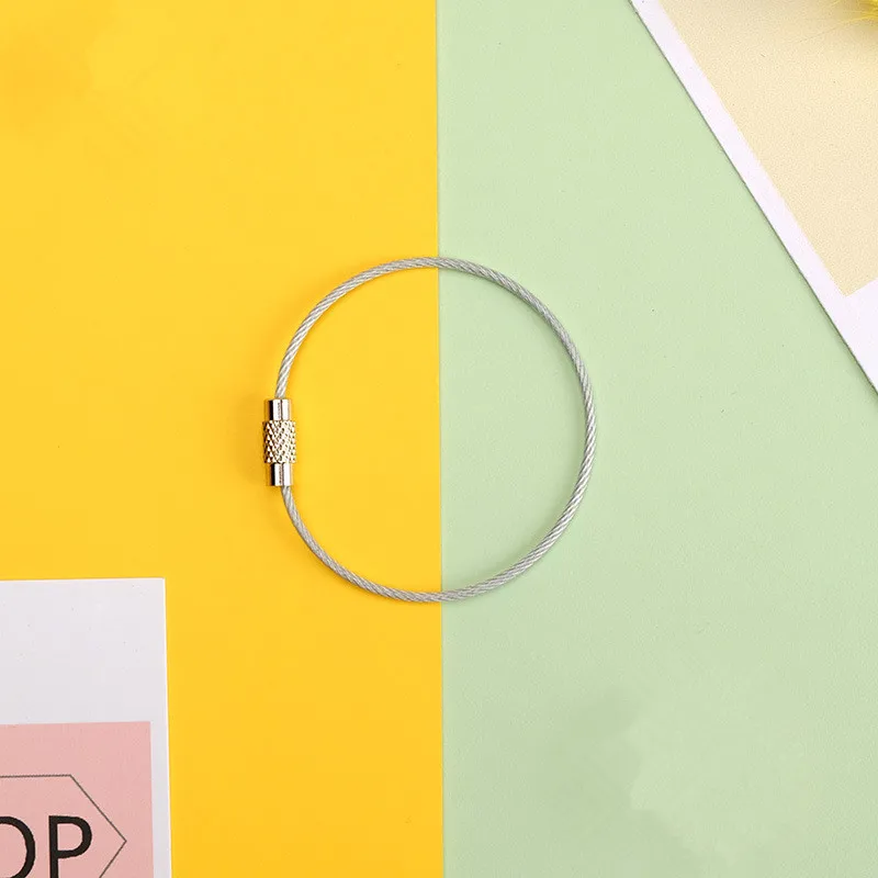 10 шт./лот, простой красочный брелок из нержавеющей стали, карабин, держатель для ключей, наружный провод, брелки, трос, закручивающаяся цепочка для ключей
