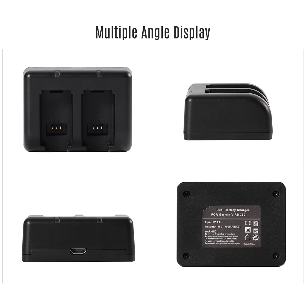 Двойное зарядное устройство подходит для аккумуляторов Garmin Virb 360.