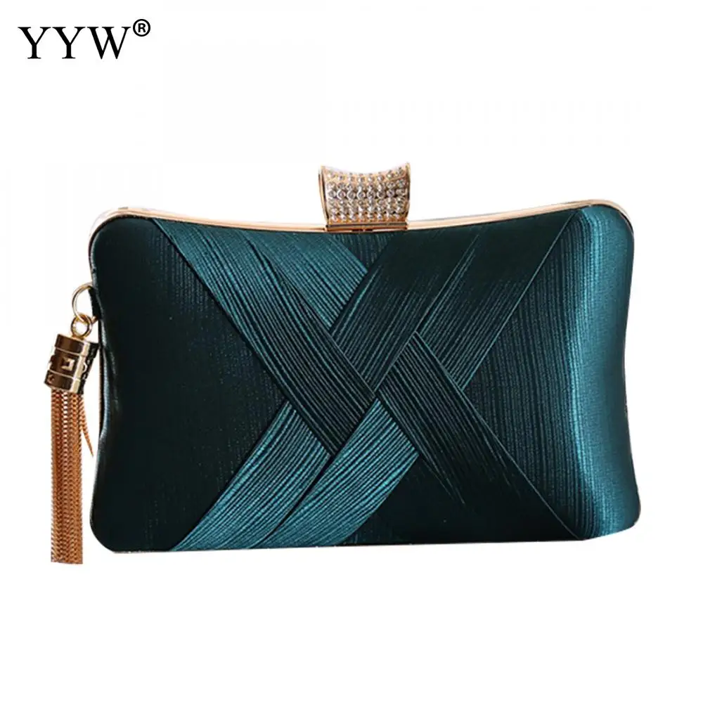 Зеленая женская сумка с элегантной кисточкой, Шелковый вечерний клатч, сумочка невесты для свадьбы, выпускного вечера, вечеринки, Pochette Femme, 2019