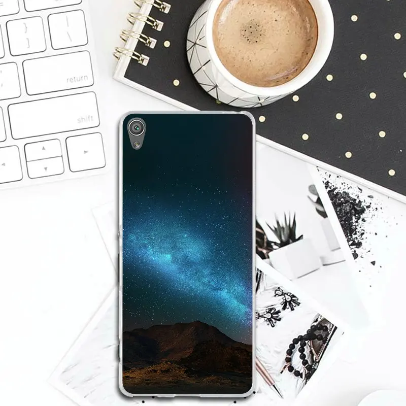 Кварцевые Силиконовые чехлы из мягкого ТПУ с кристаллами Rock Aqua Space для Sony Xperia Z Z1 Z2 Z3 Z5 M2 M4 XA E5 T3, компактный чехол для телефона с черным рисунком, противоударный чехол, защитный чехол для телефона