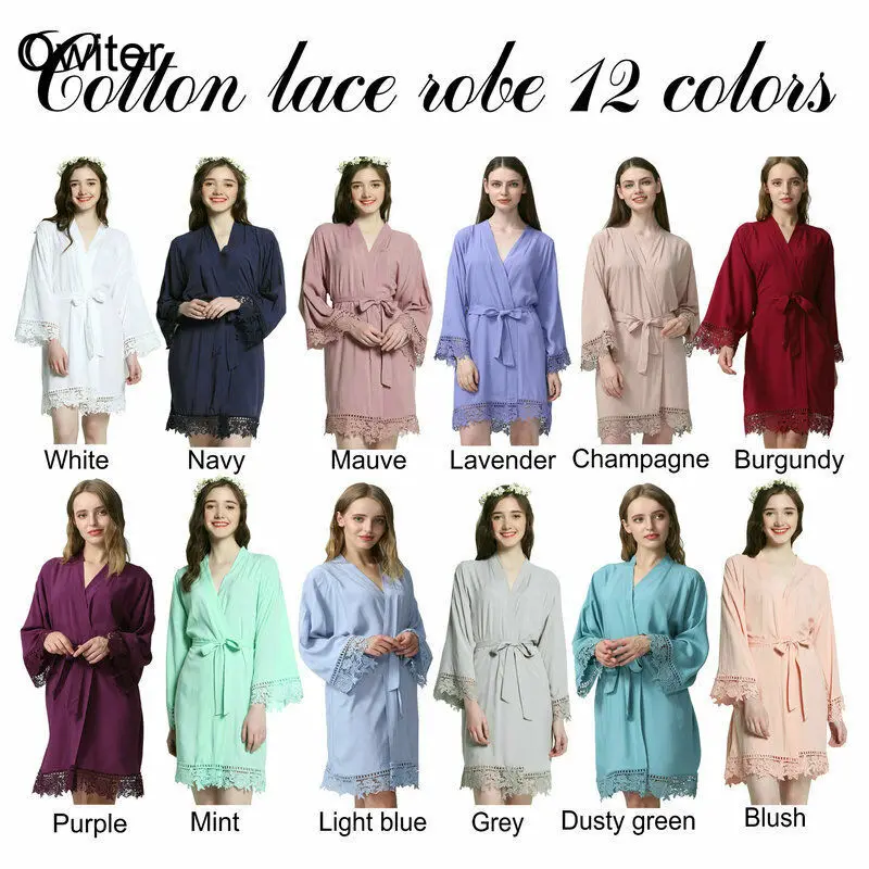 Owiter Новое хлопковое кимоно подружки невесты халаты с кружевной отделкой женское свадебное платье короткий пояс халат YX001