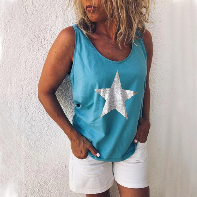 * Описание товара:Женская одежда, летняя мода, круглый вырез, свободный без рукавов, с принтом, спортивный жилет/топы, плюс размер