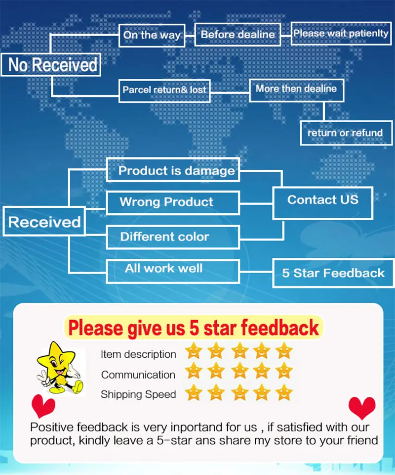 Ваши хорошие отзывы очень важен для нас. Если вы довольны нашим товаром и сервисом, пожалуйста, дайте нам пять звезд и положительный отзывы.