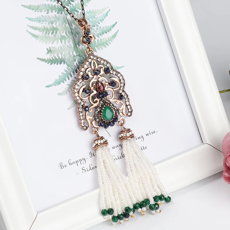Kinel индийское ожерелье с двойной кисточкой для женщин античное золото Хрустальный цветок винтажное свадебное ювелирное Ожерелье Подвеска 2019 Новинка