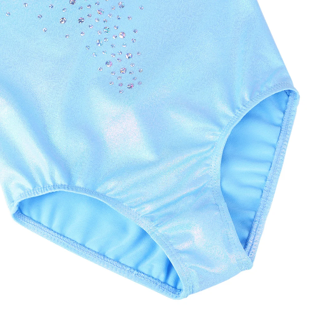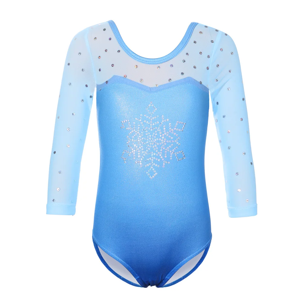Балетное трико BAOHULU с тремя рукавами, один комплект, купальник с блестками для гимнастики, градиентный, светло-голубой, профессиональный купальник для девочек