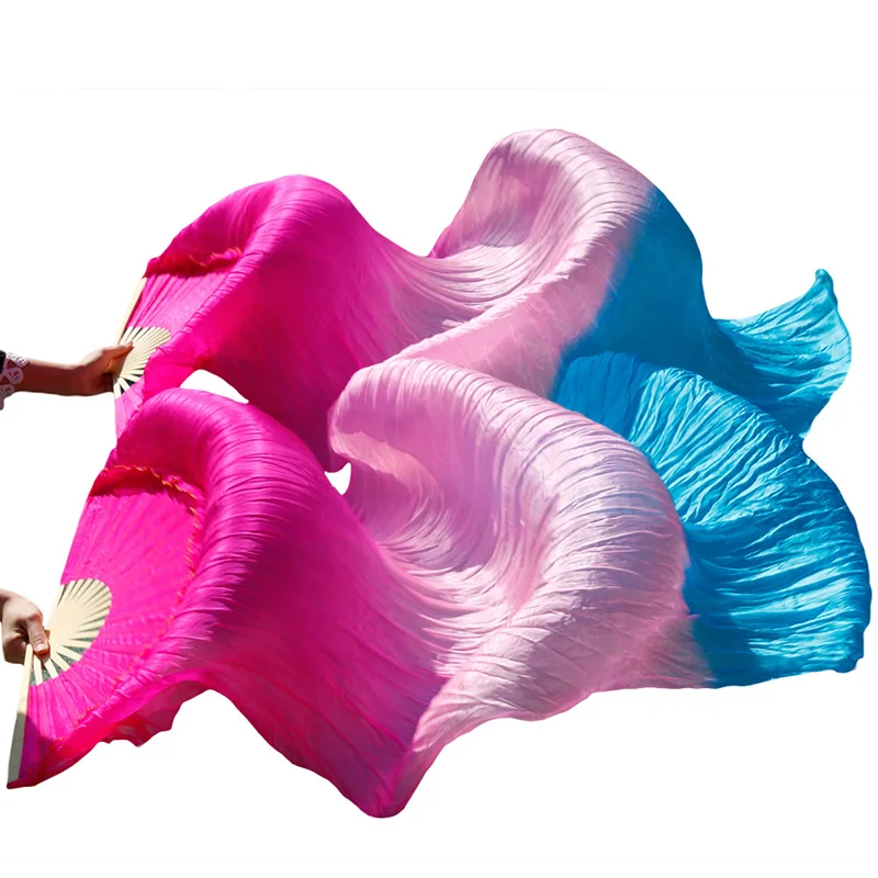 Принадлежности для танца живота, 100% натуральный шелк/искусственный шелк, ручная работа, крашеные шелковые вуали для танцев, 1 пара, высококачественные шелковые вееры