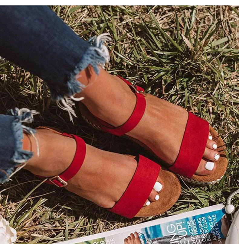 Летняя обувь; женские Босоножки на каблуке; Новинка 2019 года; обувь на танкетке; женские повседневные сандалии; большие размеры 43