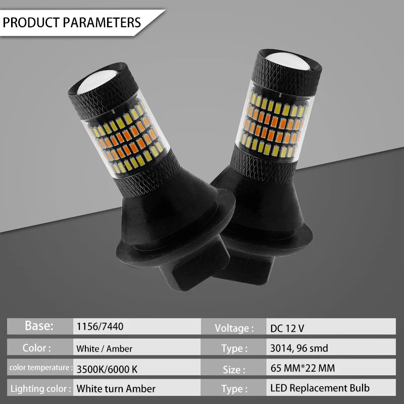 Функция: Запустите автомобиль, чтобы включить режим Дневной светильник, поверните, когда автоматическое преобразование в режим рулевой лампы Технические характеристики: -Материал: светодиодный чип высокой яркости, авиационный тонкий алюминий -Режим: дневной ходовой светильник + сигнальный светильник поворота. -Назначение: Двойной режим поворота. -Рабочее напряжение: DC12V. -Качество светодиодов: 96 светодиодов. -Светодиодный Цвет: белый = DRL: Сигнальные огни поворота: желтый Посылка включает в себя: 2x автомобильные сигнальные огниСмотрите так же другие товары: