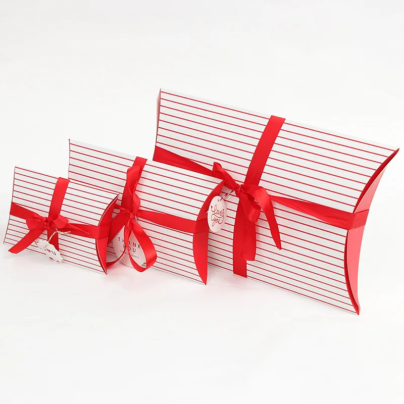 20 шт./лот, новинка, полосатая коробка для подушек, лента с бантом, Подарочный пакет из крафт-бумаги, подарочные коробки, Свадебные вечерние коробки на заказ