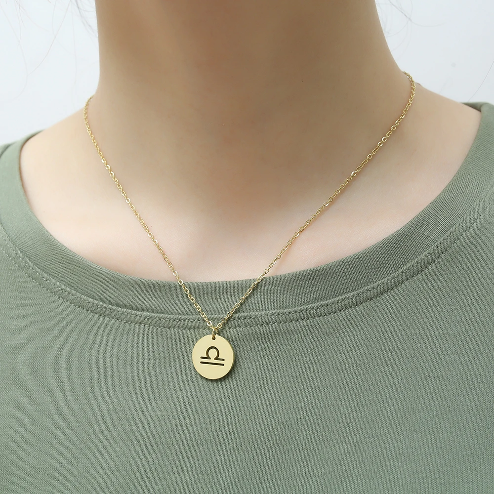Ожерелье Libra Charm с символами Двенадцати Зодиакальных знаков из нержавеющей стали - подарок для тех кто родился в сентябре.
