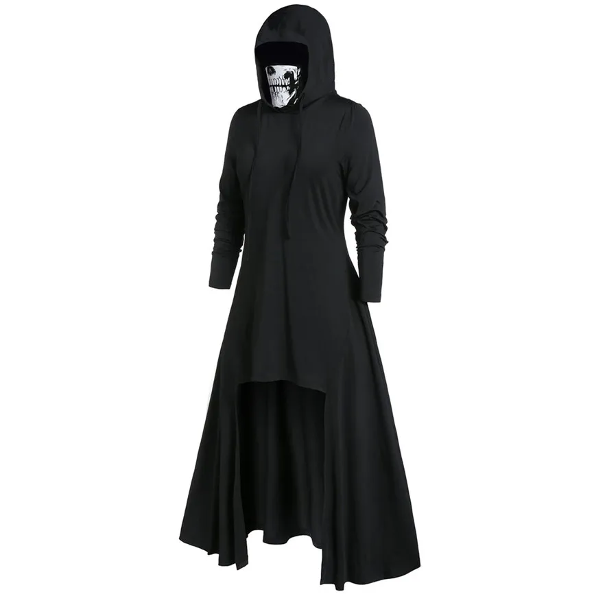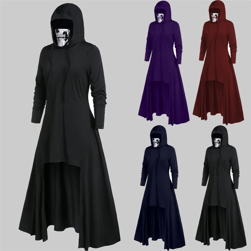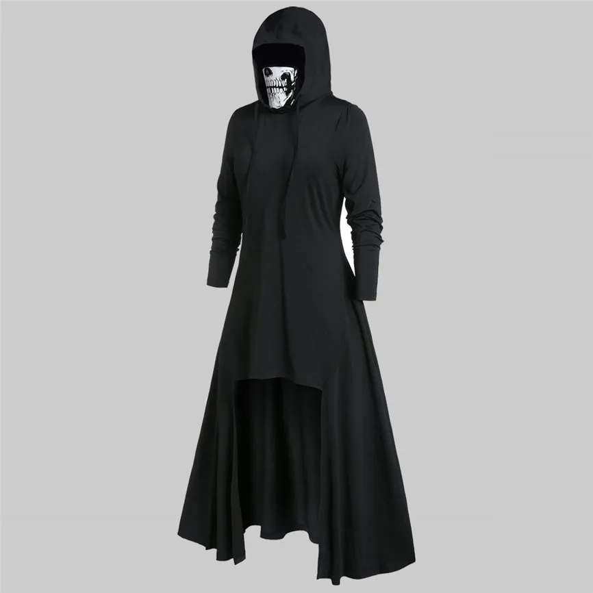 Платье женская маска на Хеллоуин в виде черепа чистый цвет пуловер с длинным рукавом с капюшоном Топы платье размера плюс платья для женщин 4xl 5xl Макси платье