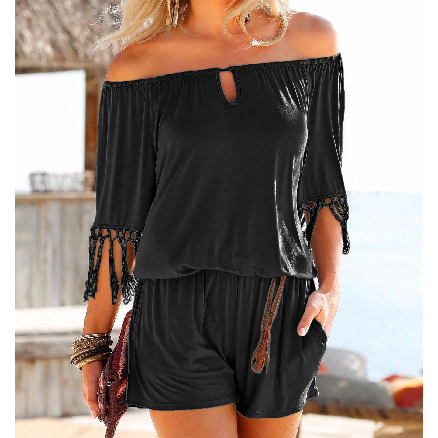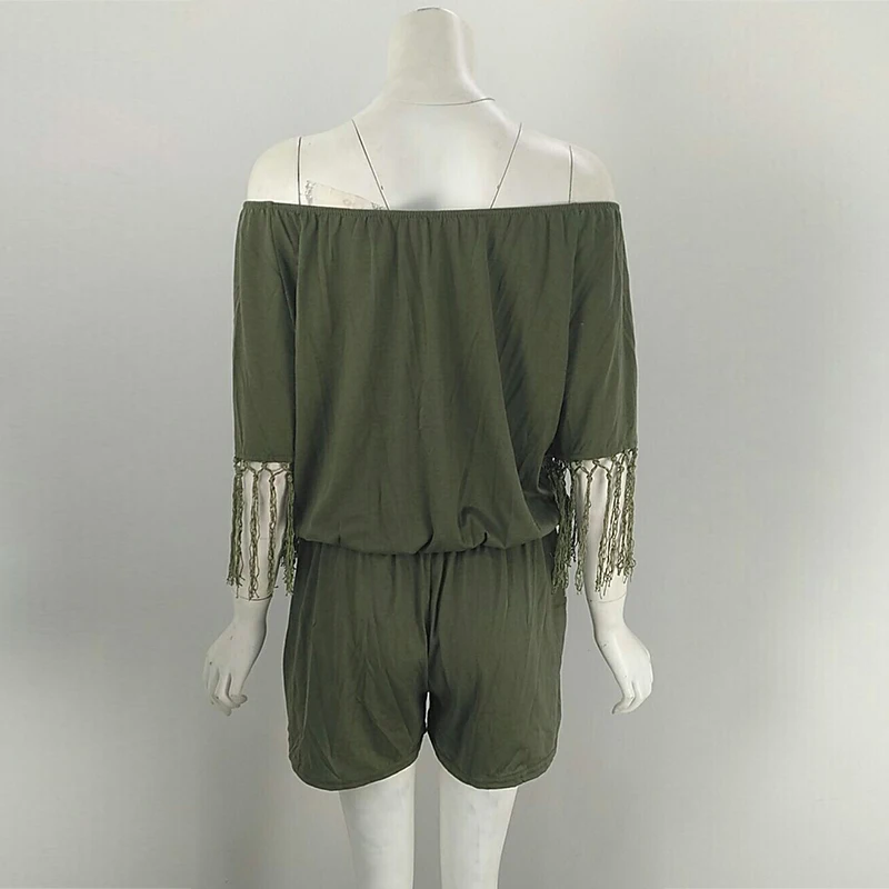 Повседневный Женский Летний комбинезон, сексуальный пляжный комбинезон с вырезом лодочкой и кисточками, шорты, комбинезоны Boho для девочек, комбинезоны с карманами XXL