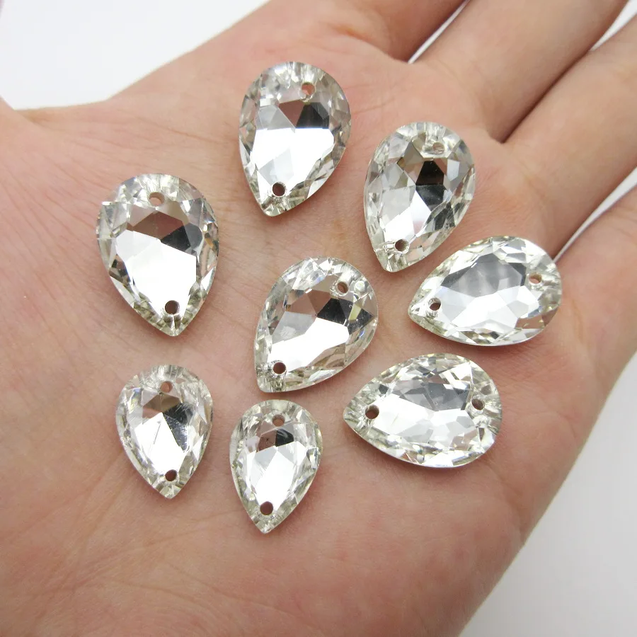 MATERIAL: Glass SHAPE: DR with 2 holes PRODUCT SIZE: 10x14mm / 13x18mm 1(mm)=0.03937(in) USE : Clothes , Bags, Phone case, accessories Diy Package: Bag Quantity/BAG: 20PCS