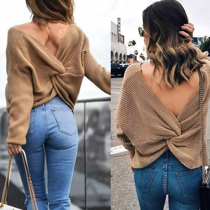 1. Этот сексуальный свитер отличается мешковатым стилем, запахом или открытой спиной, длинным рукавом, v-образным вырезом или лодочкой, с открытыми плечами.