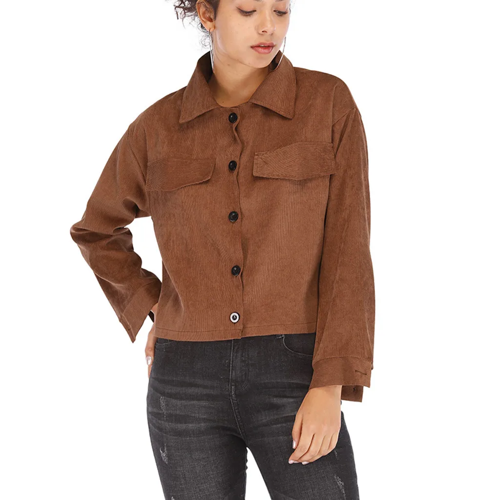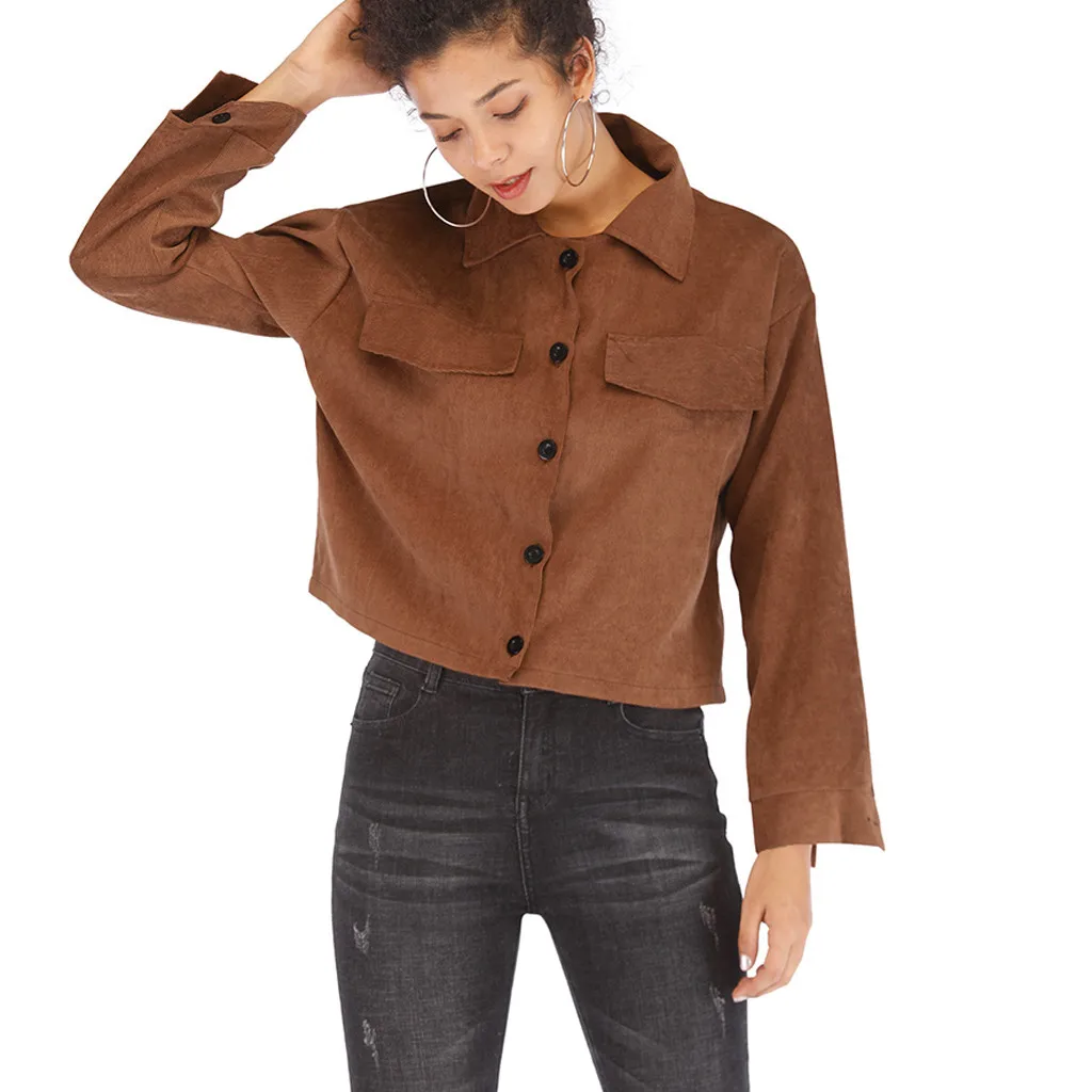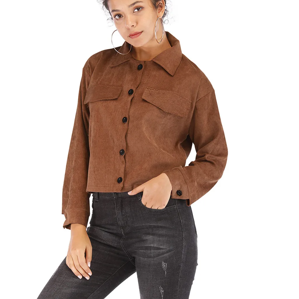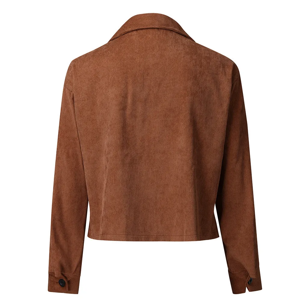Модная женская Повседневная Вельветовая верхняя одежда с длинным рукавом на молнии